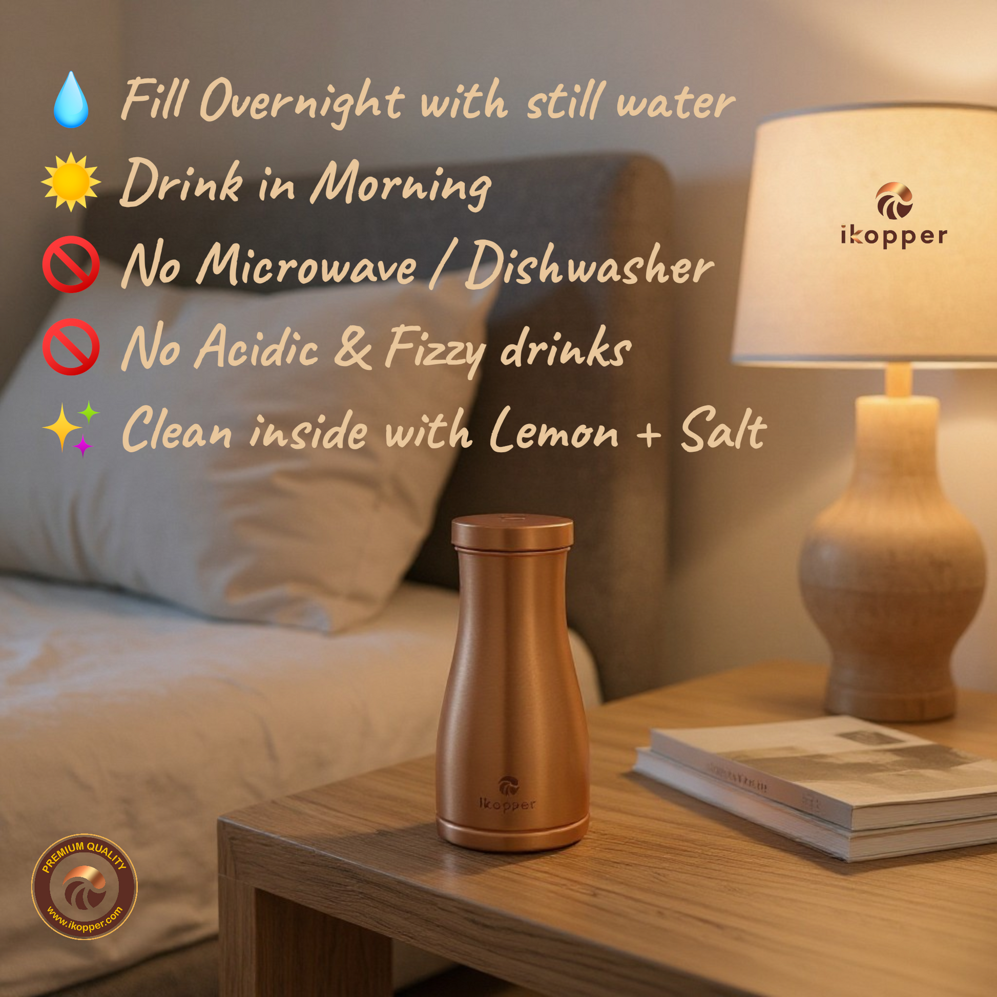 Combining ancient knowledge with modern technology, these handcrafted jars are truly unique. Not only do they keep your water fresh and free of germs, but they also enhance your daily hydration ritual. By storing water overnight, you are making a sustainable choice that benefits your well-being and the planet. Join the iKopper family and experience the satisfaction of eco-friendly hydration.
